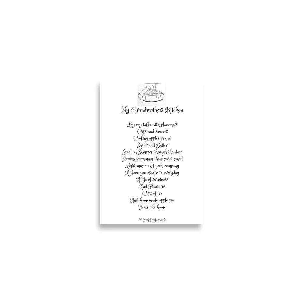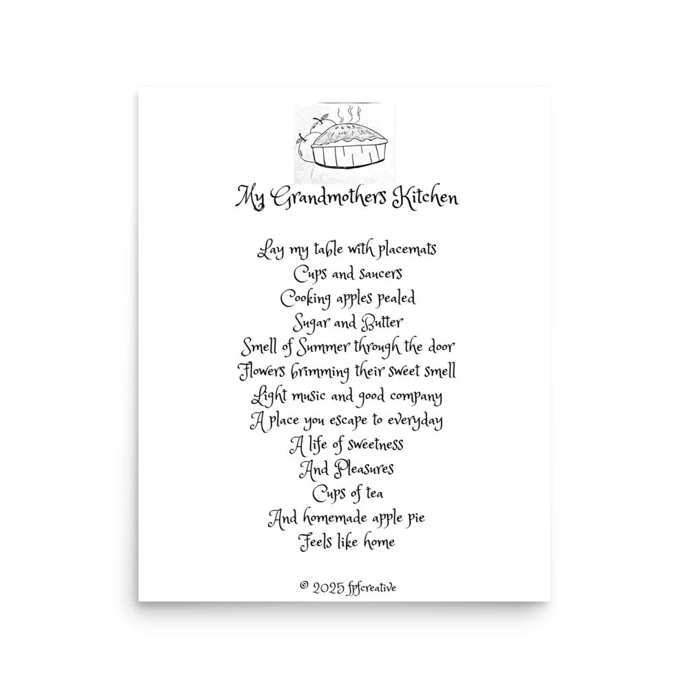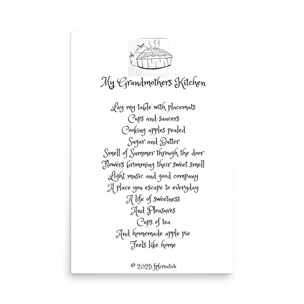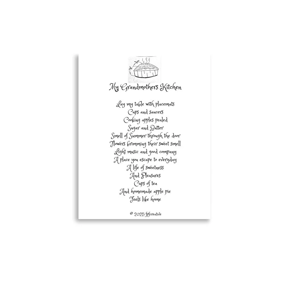 Your space should reflect who you are and what you care about. Adding a personal touch into the heart of the home the kitchen and put a smile on your Grandmothers face with this original poem design. © 2025 fpfcreative